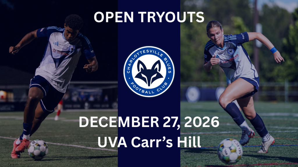 - Charlottesville Blues FC Coaching Staff reserves the right to scout players into the program without a tryout. However, it is strongly recommended that all players attend tryouts. If a player can’t participate in a tryout, please contact bkuk@charlottesvillebluesfc.com.